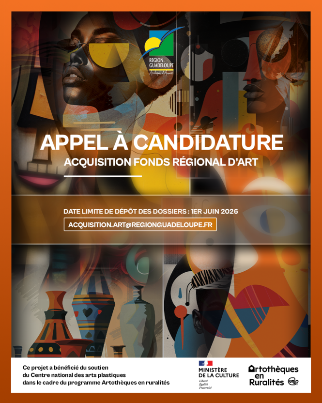La Région Guadeloupe réaffirme son engagement en faveur de la création et de la diffusion artistique et culturelle et lance ce lundi 23 mars son appel à candidatures pour l’acquisition d’œuvres d’art contemporain.