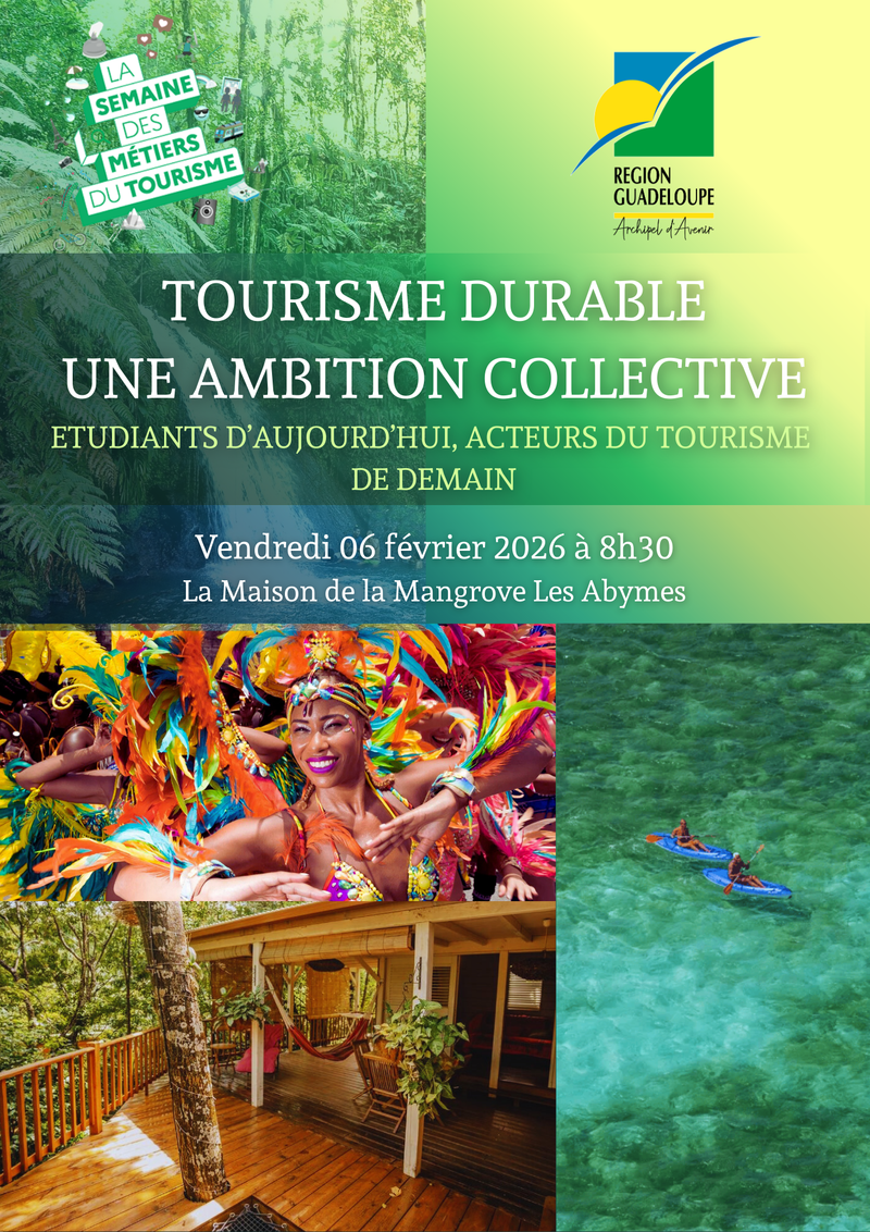 Sous le thème « Tourisme durable : une ambition collective », cet événement se tiendra le vendredi 6 février 2026, dès 8h30, à l'Espace Taonaba (Maison de la Mangrove) aux Abymes.