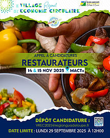 Appels à projet Ecoutez Un Écoprojet pour ma Guadeloupe Le 15 septembre 2025 Face aux enjeux environnementaux croissants en Guadeloupe, territoire riche d'une biodiversité exceptionnelle mais confronté à de multiples pressions écologiques, l'éducation à l'environnement et au... 3ème village de l'Economie Circulaire : appel à candidatures exposants Le 01 septembre 2025 Résolument déterminée à impulser un modèle économique innovant et durable basé sur l’économie circulaire au sein de notre archipel, la Région Guadeloupe, en partenariat avec l’ADEME et l’Union Européenne dans... 3ème village de l'Economie Circulaire : appel à candidatures restaurateurs Le 01 septembre 2025 Résolument déterminée à impulser un modèle économique innovant et durable basé sur l’économie circulaire au sein de notre archipel, la Région Guadeloupe, en partenariat avec l’ADEME et l’Union Européenne dans... APPEL A PROJETS : PROTECTION DES EXPLOITATIONS AGRICOLES Le 01 octobre 2024 Dans le cadre du SRDEII et au regard du contexte agricole, la région Guadeloupe lance un appel à projet pour la "protection des exploitations agricoles" [CANDIDATURE CONCOURS] Majò an maké kréyòl - Concours de nouvelles, de contes et de poèmes en créole guadeloupéen Du 01 octobre au 20 janvier 2025 Dans le cadre de la défense et de la promotion de la langue créole, le Conseil de la Culture, de l’Education et de l’Environnement (CCEE) Guadeloupe organise un concours de nouvelles, contes et de poésies en... COMMÉMORATION DU 170ème ANNIVERSAIRE DE L’ARRIVÉE DES PREMIERS INDIENS EN GUADELOUPE : 1854/2024 Le 25 juillet 2024 Dans le cadre du 170ème anniversaire de l’arrivée des premiers indiens en Guadeloupe (1854-2024), la Région Guadeloupe lance un appel à projet pour commémorer cet anniversaire qui doit constituer un temps fort... IMPLANTATION DE DISTRIBUTEURS AUTOMATIQUES SUR LES SITES DE LA REGION GUADELOUPE Le 17 juillet 2024 En application de l’article L. 2122-1-1 du code général de la propriété des personnes publiques (CGPPP), la Région Guadeloupe organise une procédure de sélection préalable à la délivrance d’une autorisation... Déploiement du dispositif Cafés-Cultures en Guadeloupe Le 12 mars 2024 En Guadeloupe, nombre d’établissement (cafés, bars et restaurants) accueillent des pratiques culturelles et artistiques, offrant un premier espace de diffusion et de rencontre avec le public. Le déploiement de... RÉGION GUADELOUPE / CANAL + ANTILLES : APPEL A PROJET Le 15 novembre 2023 Vendredi 27 octobre, le président de Région Ary Chalus et Jacques Du Puy, président de Canal + International ont renouvelé leur soutien au secteur du cinéma et de l’audiovisuel, à travers la signature d’un... Troisième édition de l’appel à projets « Je coopère avec les pays de l’OECO » Le 13 juin 2023 Depuis le 14 mars 2019, la Guadeloupe est le 11e membre de l’Organisation des Etats de la Caraïbe Orientale (O.E.C.O) et s’inscrit plus largement dans le mouvement d’intégration régionale et dans l’effort de... Page 1 de 3. 1 2 3 Suivant